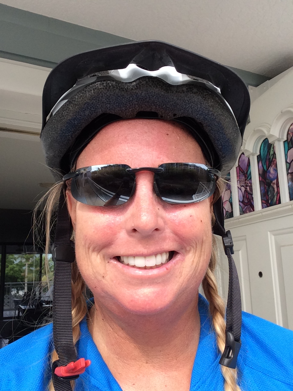 Yeasterday was a 45 minute ‘easy’ bike ride. Well, first of all, the only pace I have is ‘easy’. I don’t really have a higher gear. Wednesday started kind of rainy and gross but then it cleared up! I, apparently, wasn’t satisfied with going when the rain stopped. I had to wait until the blazing sun came out. Whoops. I started on my ride with the plan of going up and down the beach as many times as I could in 45 mins (about 5 miles a lap). Easy peasy. Well, after it rains here, all of the bugs that exist in, I’m pretty sure, the entire universe come out and they’re PISSED. As I biked back and forth I just kept getting NAILED with gnat after gnat. The best thing was due to the blazing sun and my ‘easy’ pace, the bugs were really able to stick to me. Sweet. I almost called it quits early but then the Training Peaks workout for that day would’ve been a mocking yellow instead of green. Chasing the green high, I continued onward. At the end of it, I couldn’t really tell the difference between freckles and gnats. I did learn that I should zip my bike shirt all the way up in buggy situations so as not to get a gnatty bosom. Note to self. Here’s a lovely after photo. Yup, it’s true fellas, I’m single!