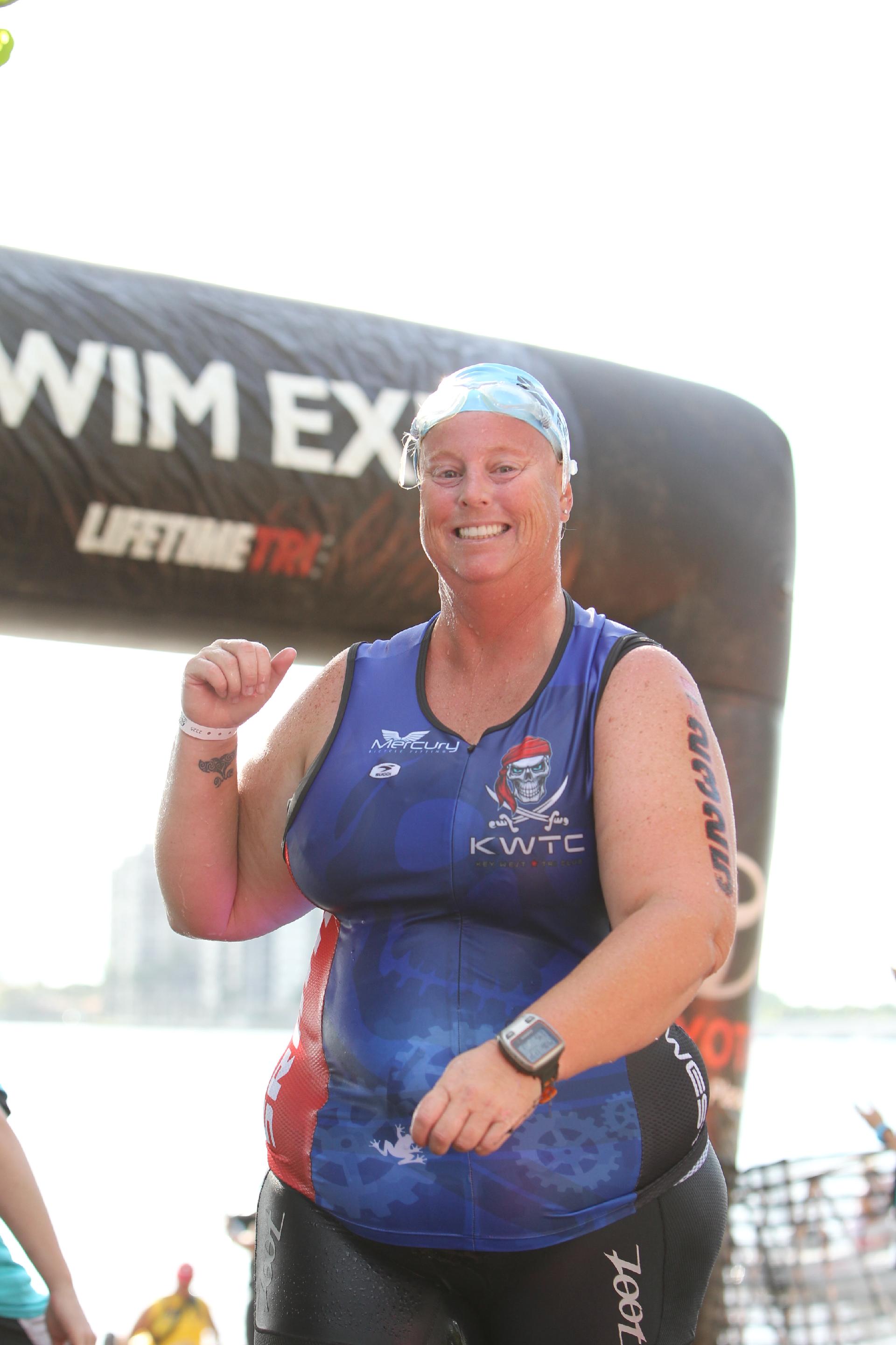 I fought my way back and came out of the water really psyched about my time. I was not last! And it was definitely my fastest, most comfortable swim.