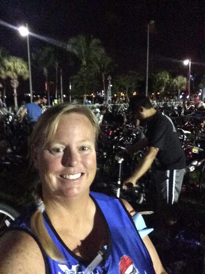 There were 5 of us from Key West that competed. Colleen, Renee and Deirdre in the Olympic Division and myself and Brandon in the Sprint. Normally in a Triathlon, the Sprint starts like maybe an hour after the Olympic. This time it was about 2 hours later. This is the only Tri I’ve done where I have zero desire to try for the Olympic distance. I don’t know what time they had to get up but they had to board a ferry to be dropped off at “Escape Island” at 4:45! Brandon and I shared a room that looked over the dock and most of the race course. We were wiping the sleep out of our eyes when the girls were walking to the ferry. Then once on the island, they had a two hour wait to go. No thanks (she says while signing up for the Olympic. kidding. sort of). We were super lucky to be staying right next to the transition area. We had dropped off our bikes the night before (mandatory check in) and didn’t have to stress about getting over to transition. Like most races, we had to be out of transition by the time of the Olympic start (7:00) despite our start times 2 hours later (9:00 for me).  We headed over to transition about 6:20 and were back in the hotel by 7:00 for a nap, to eat and stretch. It was a great luxury to have.